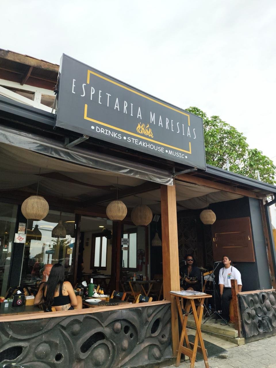 Mais de 30 espetinhos na brasa, drinks, música ao vivo todos os dias e vibe praiana em frente a praça internacional do surf.